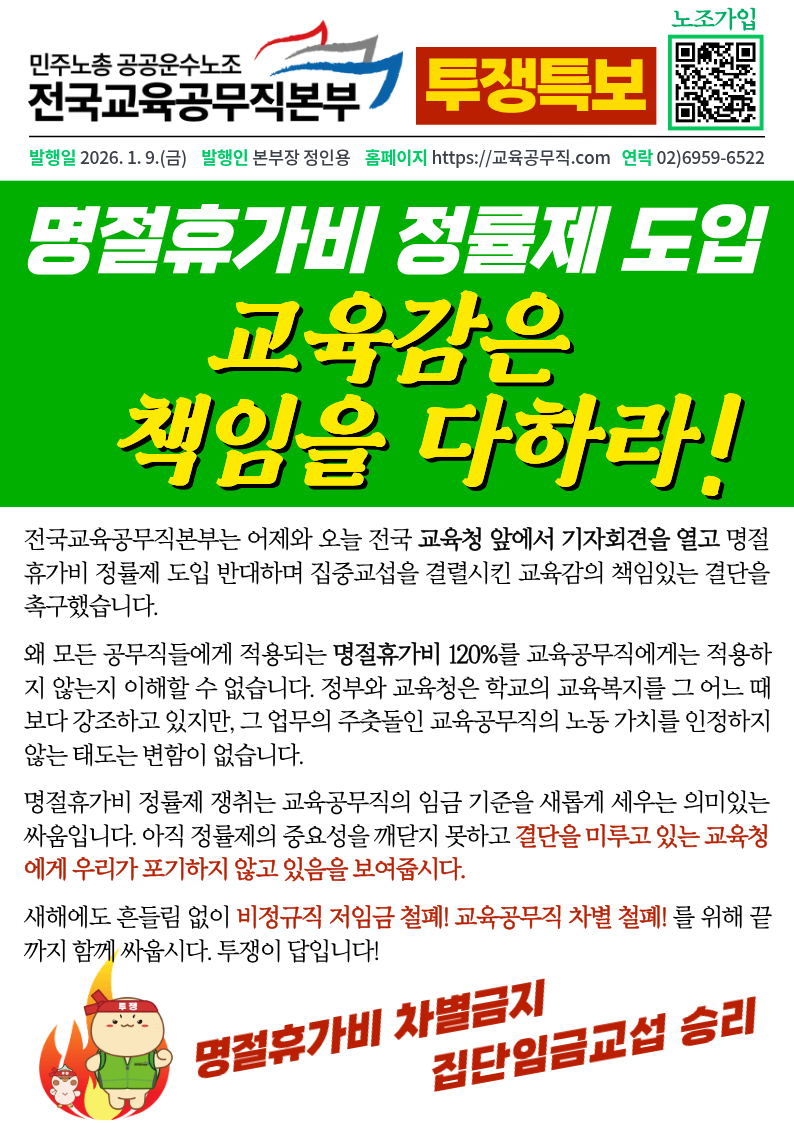 [투쟁특보] 명절휴가비 정률제 도입 촉구 기자회견🔥 교육감은 책임을 다하라!