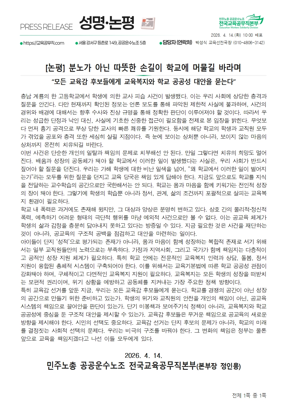 [논평] 계룡 고등학교 교사 피습 사건260414.hwp (211.0 KB)