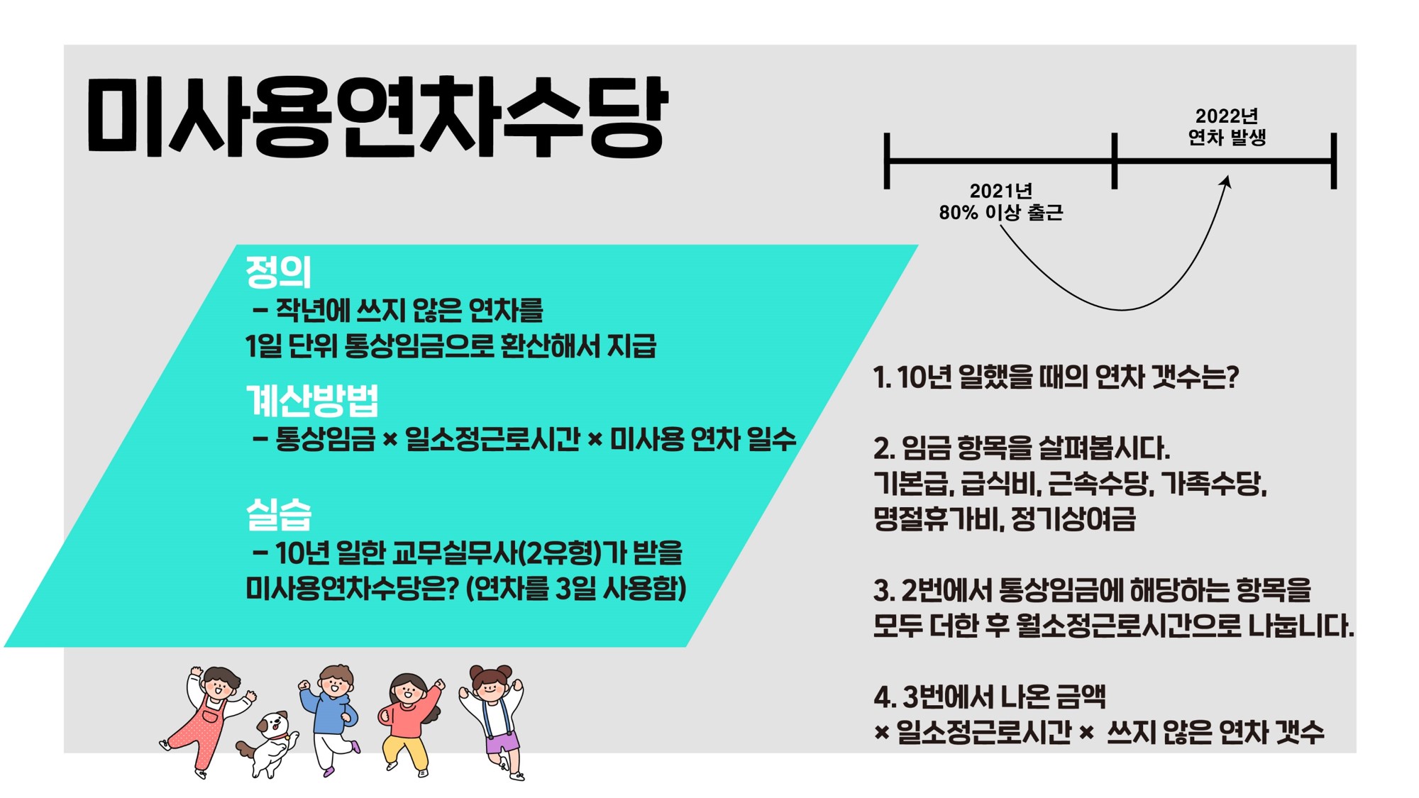 연차휴가는 오른쪽 링크에서 설명드렸습니다. 노동법 자료 | 전국교육공무직본부 (xn--ob0btg349a4slcgd.com)