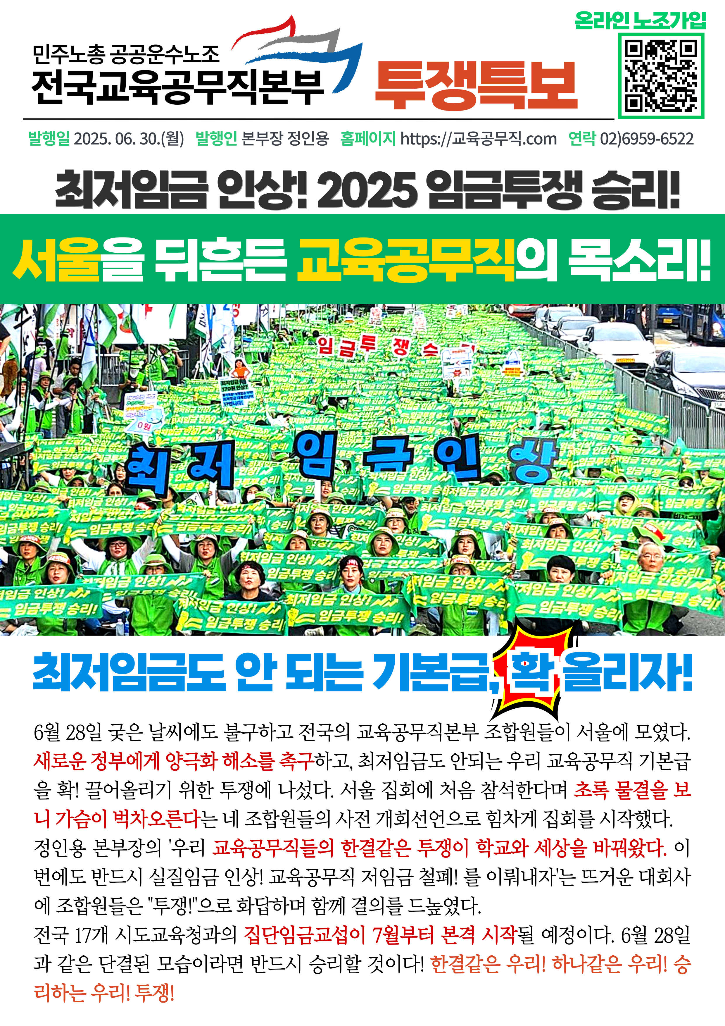[소식지] 최저임금 인상! 2025 임금투쟁 승리! 서울을 뒤흔든 교육공무직의 목소리