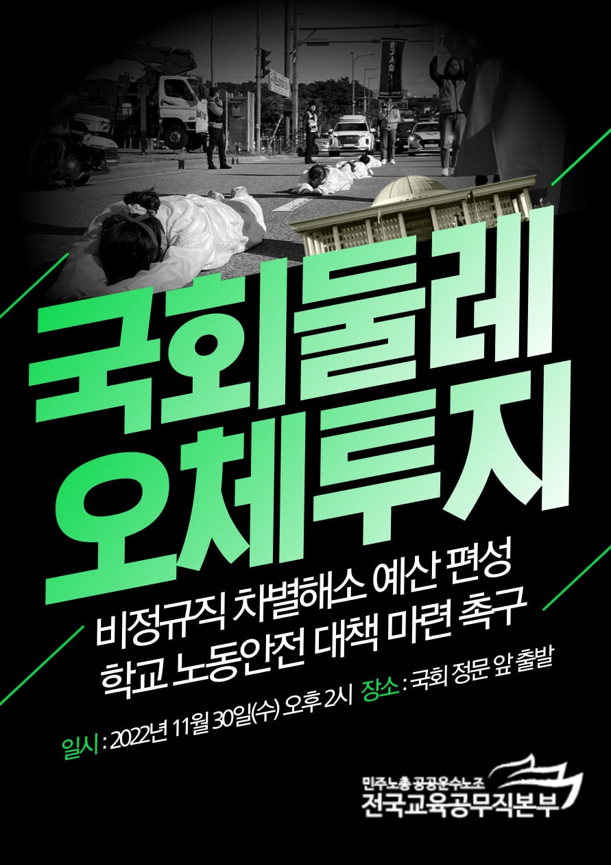 ○ 비정규직 차별해소 예산 편성, 학교 노동안전 긴급 대책 마련 촉구를 위한 국회둘레 오체투지