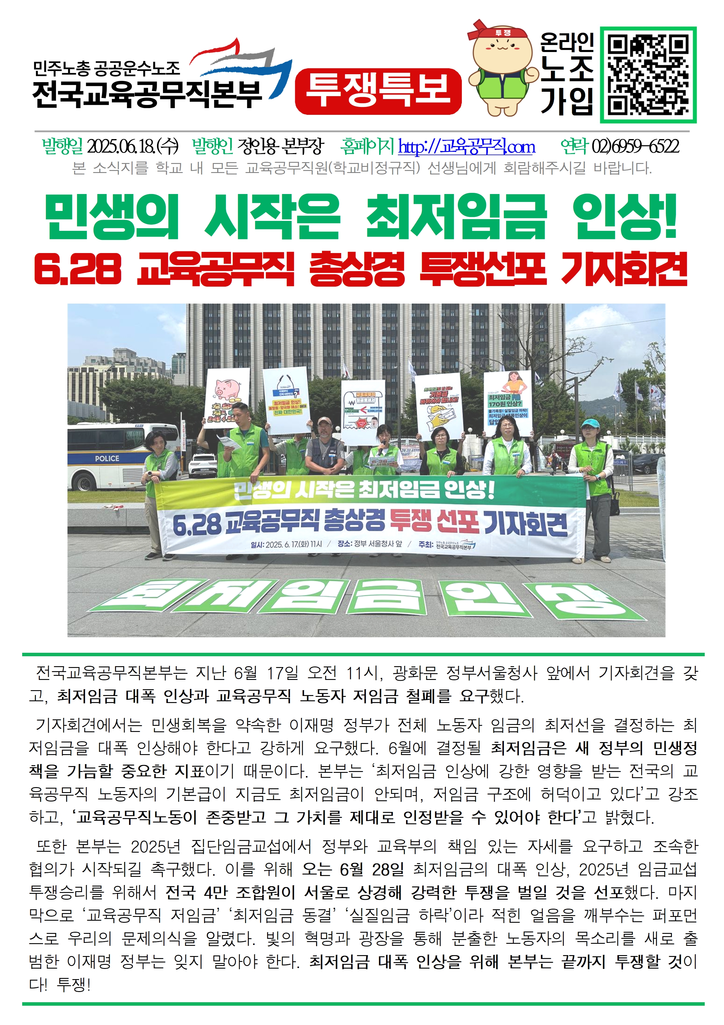 [소식지] 6.28 교육공무직 총상경 투쟁선포 기자회견