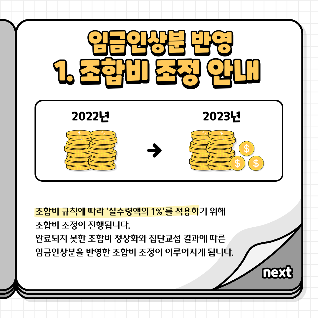 집단교섭에서 임금인상이 합의되었습니다. 이에 임금인상분을 반영하여 타노조와 협의 후 6월부터 조합비를 조정합니다.