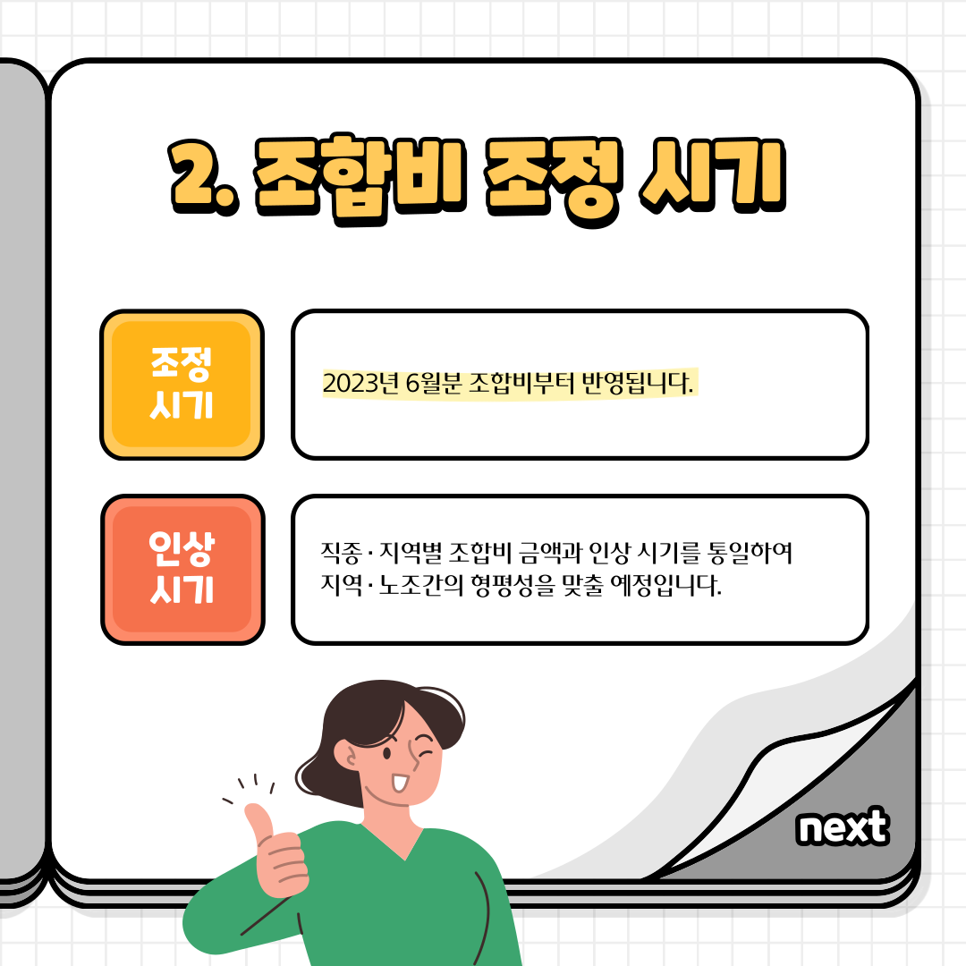조합비 조정은 조합비 규칙 제2조에 따라 급여 “실수령액의 1%”에 근접하게 조정했습니다.