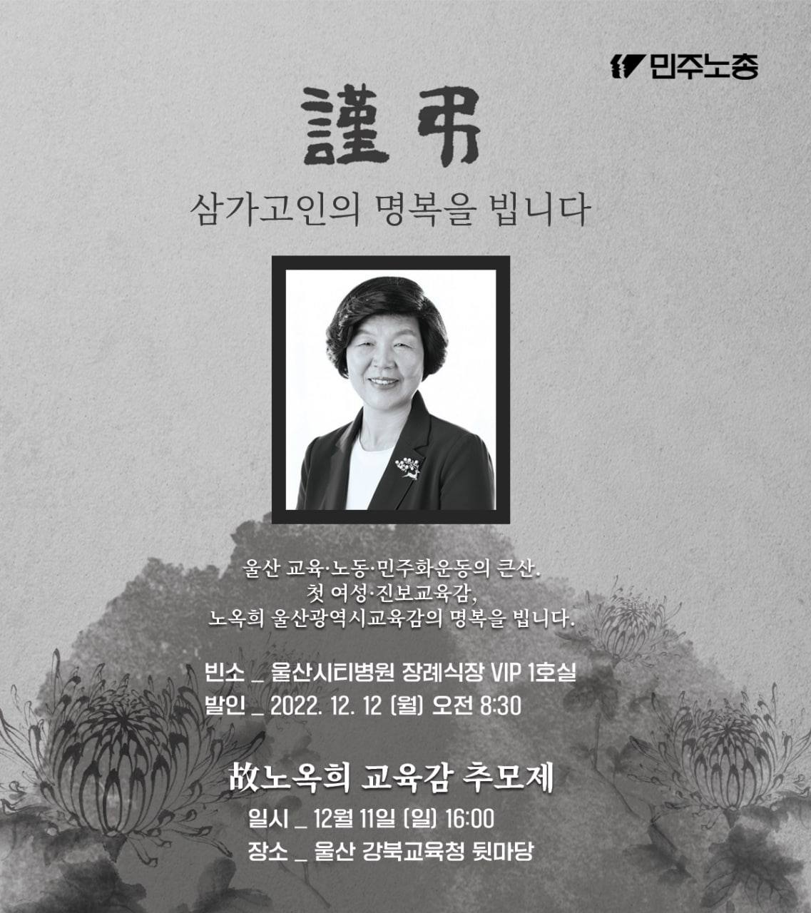 교육계에 의미 깊은 족적을 남긴 노옥희 교육감에게 깊은 애도와 평안한 안식을 빕니다.