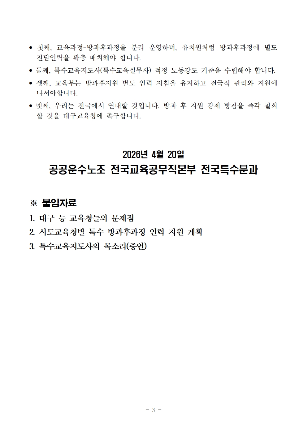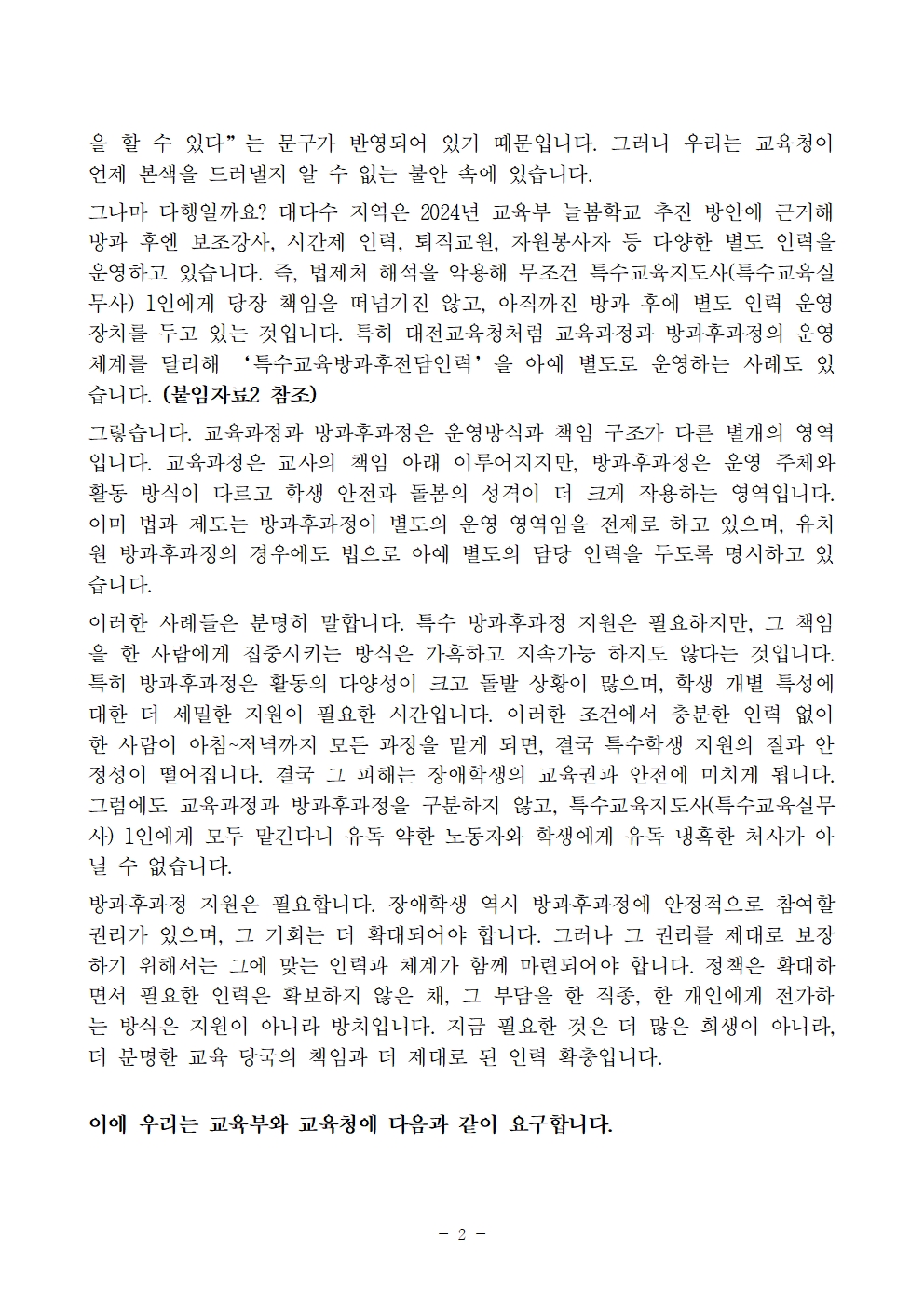 [보도자료] 4.20 장애인 차별 철폐의 날, 학교 특수교육 지원인력의 현실