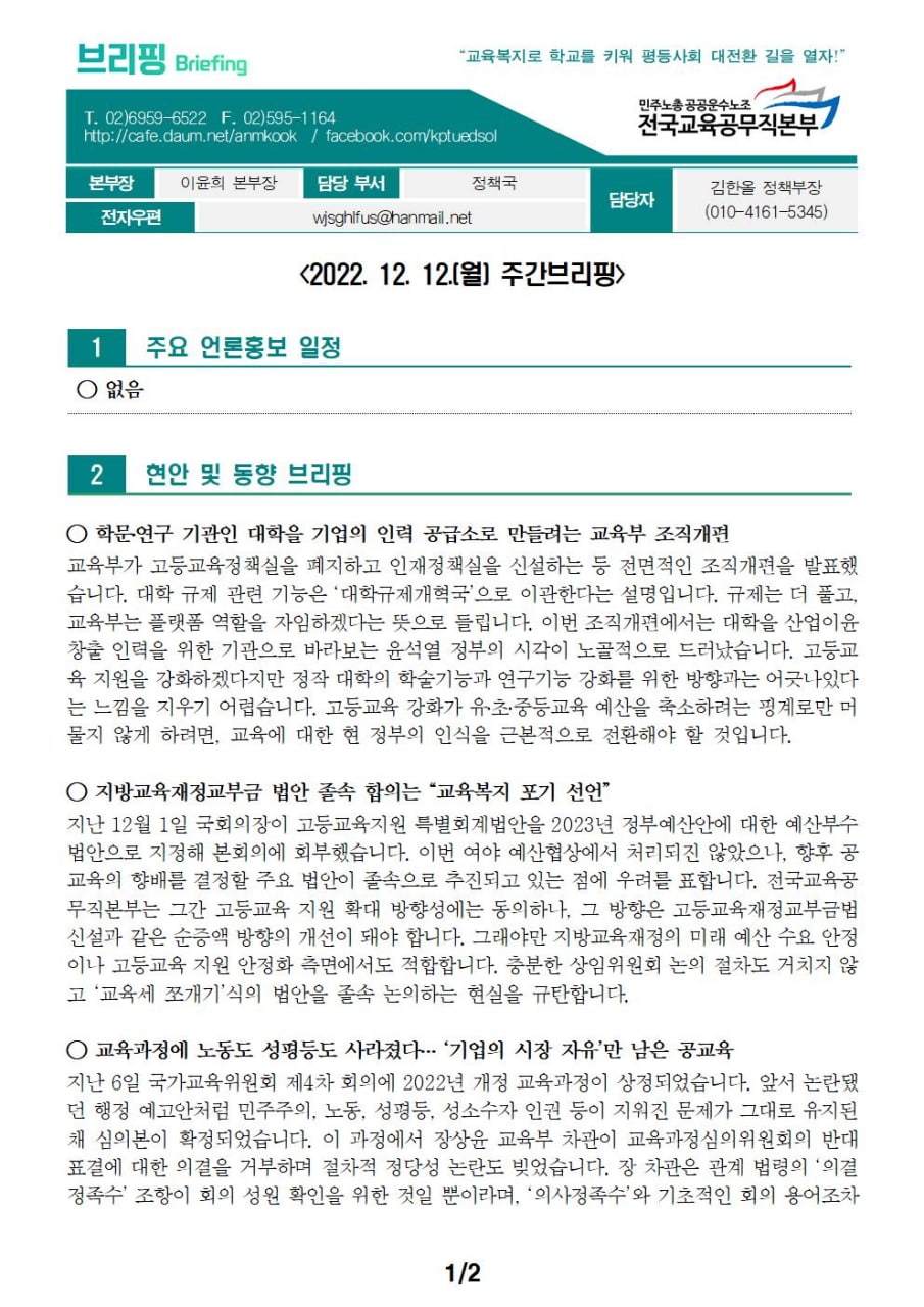 - 학문, 연구 기관인 대학을 기업의 인력 공급소로 만들려는 교육부 조직개편