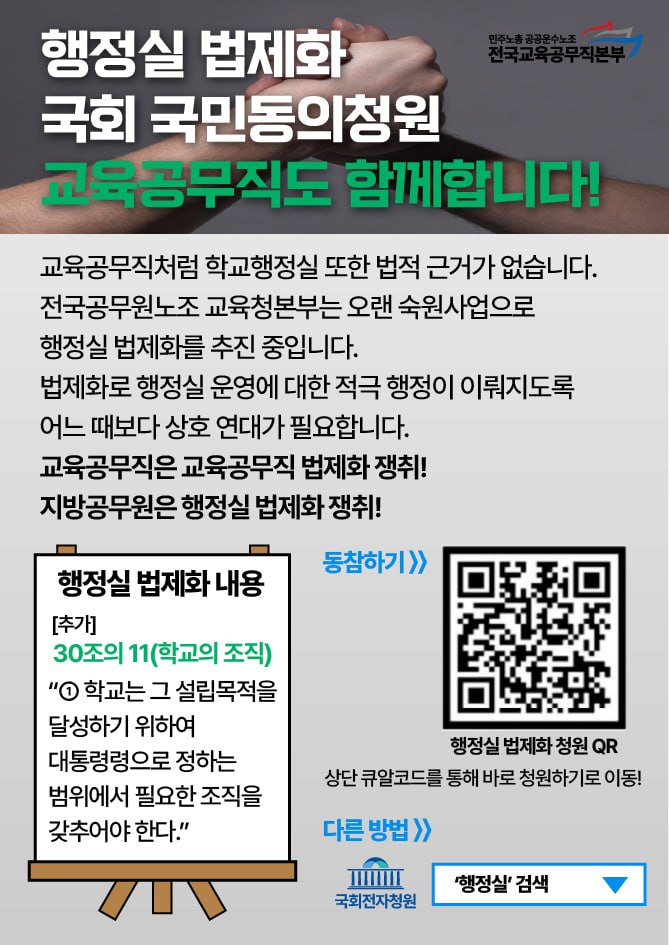 학교 행정실 법제화 교육공무직도 함께합니다.